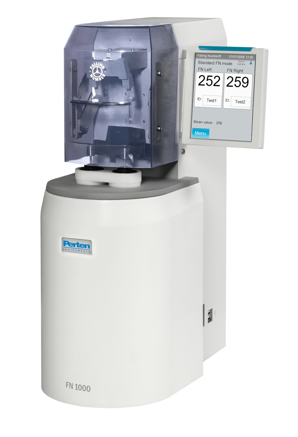 - Das FN 1000 ist ein einfach zu handhabendes automatisches Analysensystem zur Doppelbestimmung. Das System beinhaltet eine automatische Wasserniveaukontrolle und eine automatische Stopfunktion bei Erreichen einer selbst definierbaren Fallzahl – Zielgröße. Das neue Analysensystem beinhaltet Funktionen zur Vergabe und Speichern von Proben IDs, Kalkulation der korrekten Probeneinwaage bei unterschiedlicher Probenfeuchtigkeit, Mittelwertberechnung der Doppelbestimmung, korrigierte Ergebnisdarstellung auf Basis der Probenfeuchtigkeit, eine barometrische Höhenkorrektur durch ein eingebautes digitales Barometer und die Funktion zur Berechnung von Mischungen und Malzzugaben. Dem Anwender steht auch die Methode der Fungal Fallzahlmethode zur Verfügung. Die Bedienung erfolgt einfach und intuitiv über das eingebaute berührungsempfindliche 5,7 Zoll Farbdisplay. Das FN 1000 verfügt über USB- sowie Ethernet- Schnittstellen zum Anschluss von Druckern oder Barcod Readern. Die gespeicherten Ergebnisse können einfach auf einen USB Stick kopiert oder direkt z.B. an ein zentrales LIMS System übertragen werden.