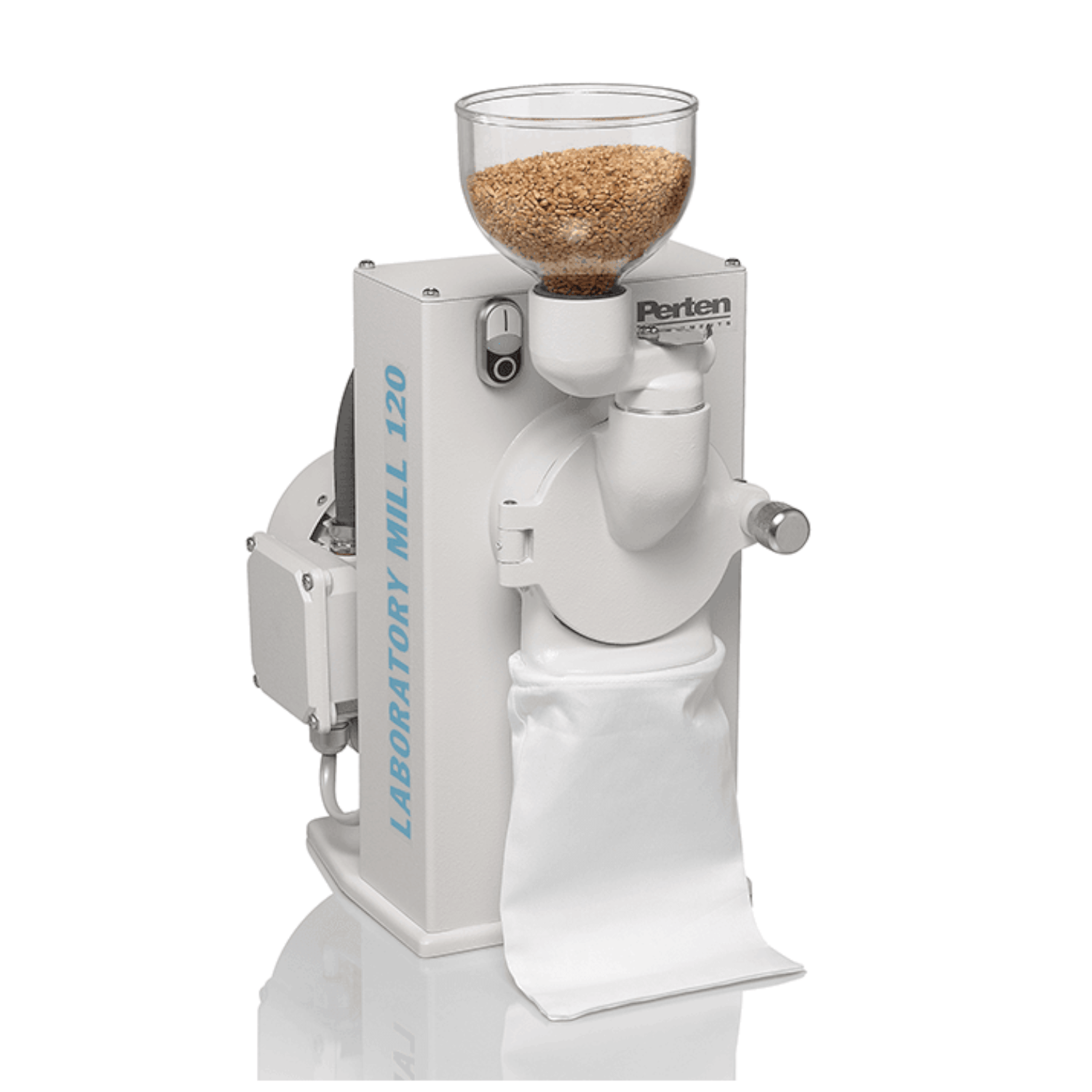 - Die Labormühle 120 wurde speziell für das Vermahlen von Getreide, Pellets, Schrot und Futtermittel entwickelt. Die gemahlene Probe kann zur NIR-, Fallzahl-, Gluen- oder Kjehldahl – Bestimmung verwendet werden. Die Labormühle 120 ist eine Schlagkreuzmühle aus stabilen Metallguss. Eine regelbare Speisevorrichtung steuert den Zulauf in eine Metallkammer aus Metall. Ein gehärtetes Schlagkreuz treibt die Probe mit hoher Drehzahl durch ein Edelstahlsieb. Das Mahlgut wird unter der Mahlkammer in einen Filterbeutel gesammelt. Ein Standartsieb von 0,8 mm wird für die Fallzahl-, Gluten-, Gluten Index und NIR – Bestimmung verwendet. Es sind weitere Siebe von 0,5 – 2,0 mm erhältlich.
