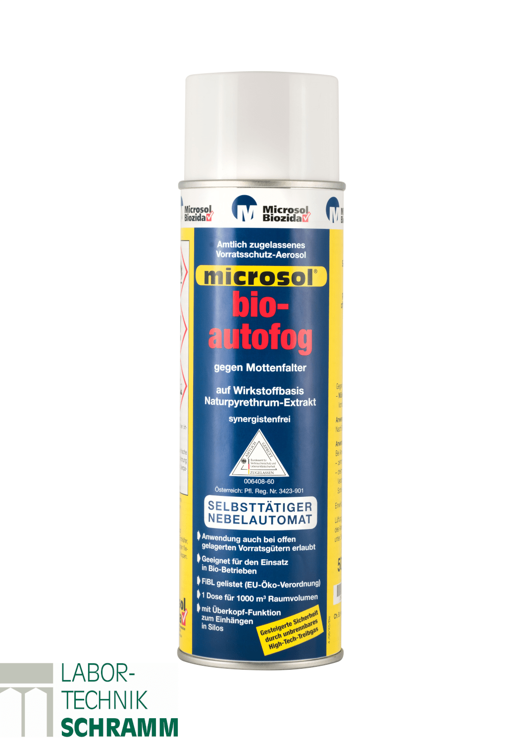 - zugelassener, gebrauchsfertiger, selbsttätiger Nebelautomat. Synergistenfrei, Anwendung im Biobereich möglich. Hohe Wirkstoffmenge. Bekämpft zuverlässig Motten, mit High-Tech-Treibgas. Auch bei offen gelagerten Vorratsgütern anwendbar. Dosierung: 1 Dose/1000³ bei offen gelagertem Getreide bis zu 10 x anwendbar. Bei sonstigen Vorratsgütern bis zu 3 x anwendbar