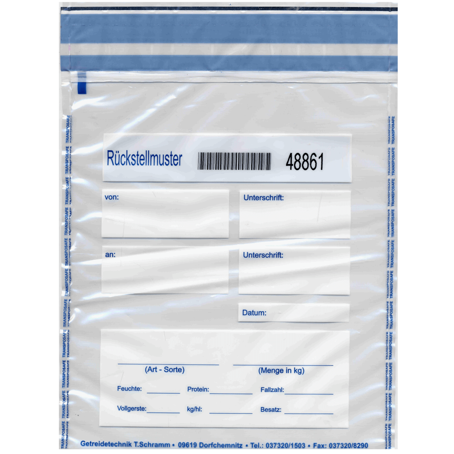 - Sicherheitstaschen für Rückstellmuster und Proben z.B. für Getreide